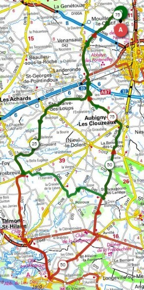 Groupe 1 - 92 km – M.C., Venansault, Les Clouzeaux, Ste Flaive-des-Loups, Le Girouard, Grosbreuil, Talmont-St Hilaire, Jard-sur-Mer, St-Hilaire-la-Forêt, Avrillé, St Avaugourd-des-Landes, La Boissière-des-Landes, Aubigny, Les Clouzeaux, Venansault, M.C.