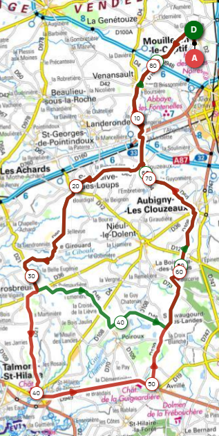 MC – Venansault – Glouzeaux – Ste Flaive – Girouard – L’Augizière – Grobreuil – dir Poiroux - St Avaugourd – Le Four – Aubigny – Glouzeaux – Venansault – MC.